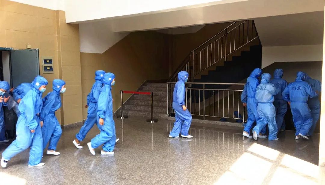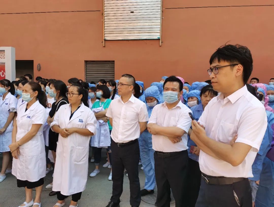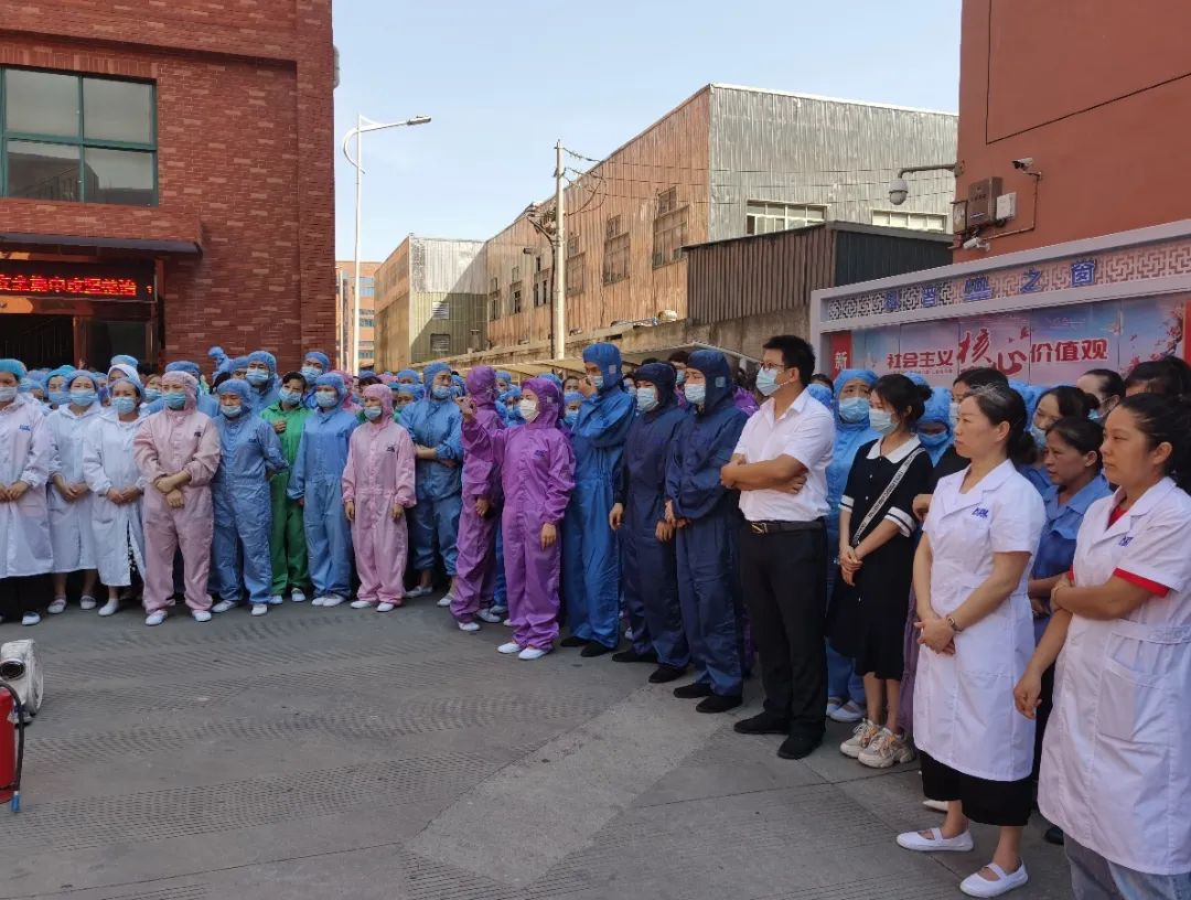 消防警报拉响后,各车间管理人员按照车间疏散示意图引导员工快速有序地向外疏散,到达指定地点后集合清点人数。