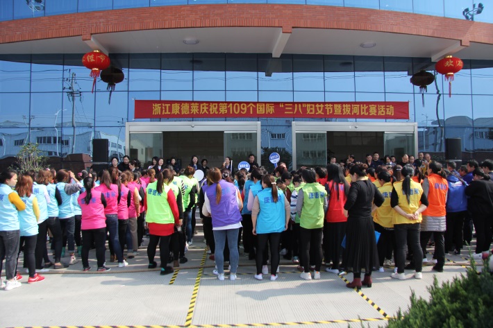 为了庆祝第109个国际“三八”妇女节,丰富员工的业余文化生活,提高员工的身体素质,在浙江今年会医疗器械股份有限公司工会委员会和女职工委员会的大力支持及职工的积极参与下, 3月11日下午组织举行了一场振奋人心的拔河比赛。