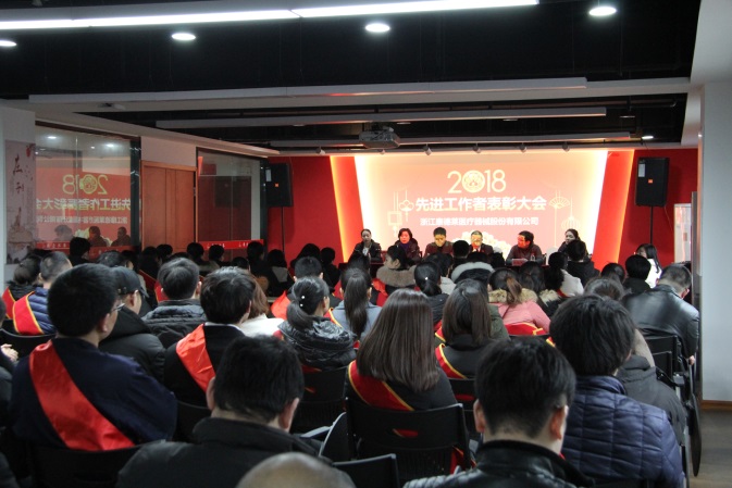 2019年1月15日下午,浙江今年会医疗器械股份有限公司2018年度先进工作者表彰大会顺利召开,公司总经理、副总经理、总经办、各中心负责人、副经理、主管、车间主任、工段长和评选出来的52位先进工作者参加了此次表彰大会。
