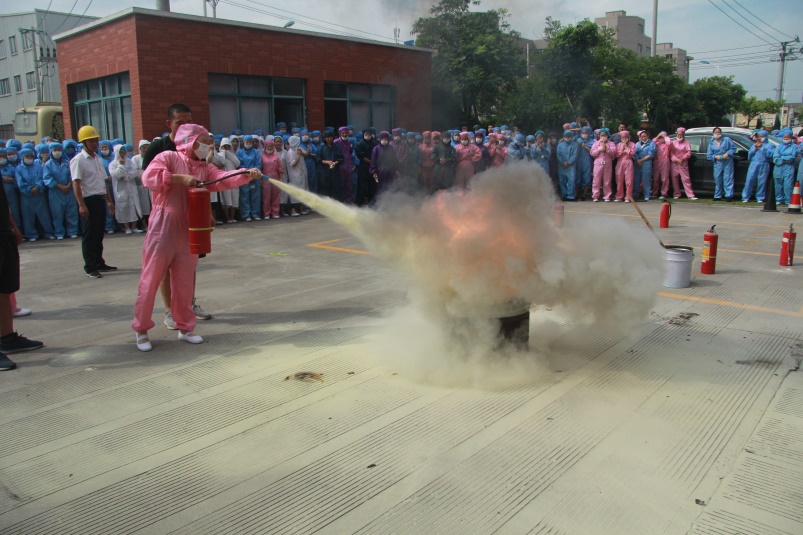 活动前一天,召集公司各部门、车间、工段组织并在先模拟后实施的原则,模拟演习前向全体员工宣讲演练相关知识,要求净化车间员工从就近安全门撤离,并迅速有序向车间外疏散,根据沿线观察疏散撤离标志,从安全楼梯疏散离开建筑物到空旷的地方,安排管理人员在楼梯楼层维持疏散秩序,严防踩踏,在规定时间内所有人员撤离车间,到指定的地方集合清点人数,确保演习成功,不发生次生伤害。在活动当天公司准备消防器材及油桶、油棉等,邀请永兴专职消防队来演习现场讲解消防知识,正确使用灭火器,提升扑灭初期火灾能力,如何逃生,保护自己。