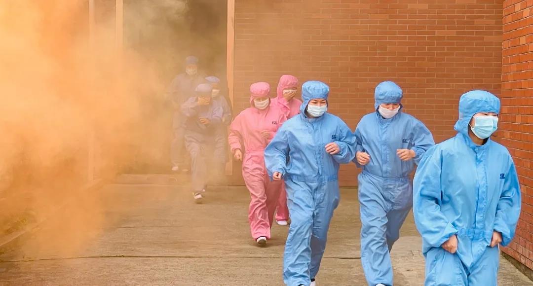 随着警报声响起,演练正式开始。各车间人员在工段长的指导下按照逃生路线有序撤离出车间。
